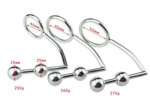 ステンレス製/コックリング付き・アナルプラグ■ダブル