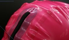 後頭部には30cmのジッパーが付いており(Sサイズは25cm)、