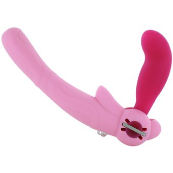 1人が上になり、ディルドを挿入した状態で相手に挿入します。