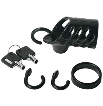本体内側の尿道リング用の穴にリングをセットし、鍵穴に付属の鍵でロックします。