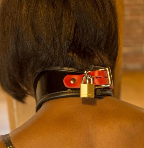 前面のDリングを固定している部分は、赤の革のアクセントが素敵★