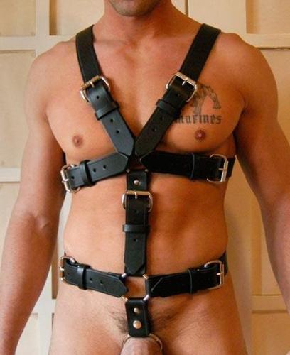 男性用/ボディー・コックリング(取り外し可)ベルトハーネス◇レザー